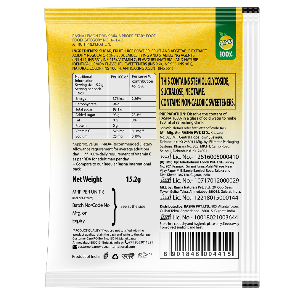 Rasna 100% Lemonade 15.2g