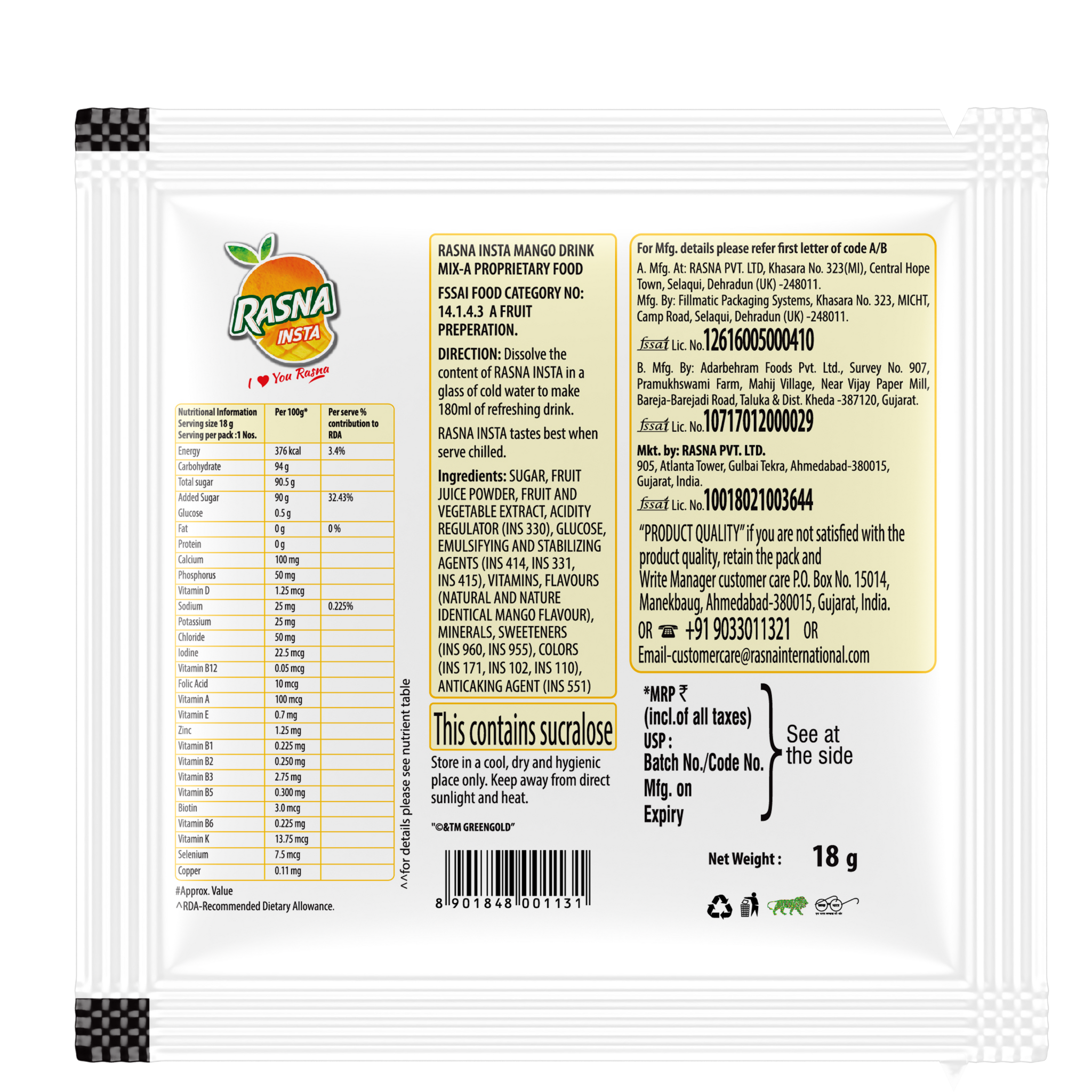 Rasna Insta Mango - High on Energy Enriched with 21 Vitamins, Minerals & Glucose
