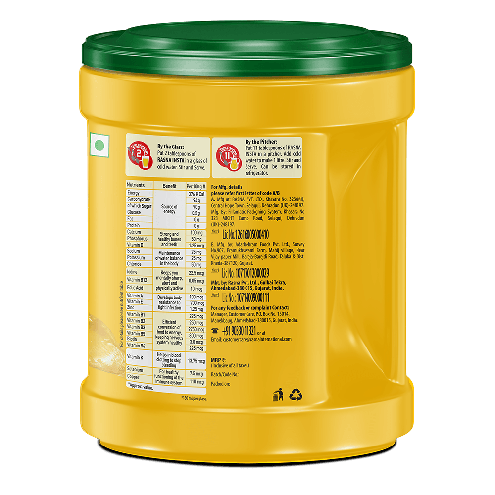 Rasna Insta Lemon - High on Energy Enriched with 21 Vitamins, Minerals & Glucose