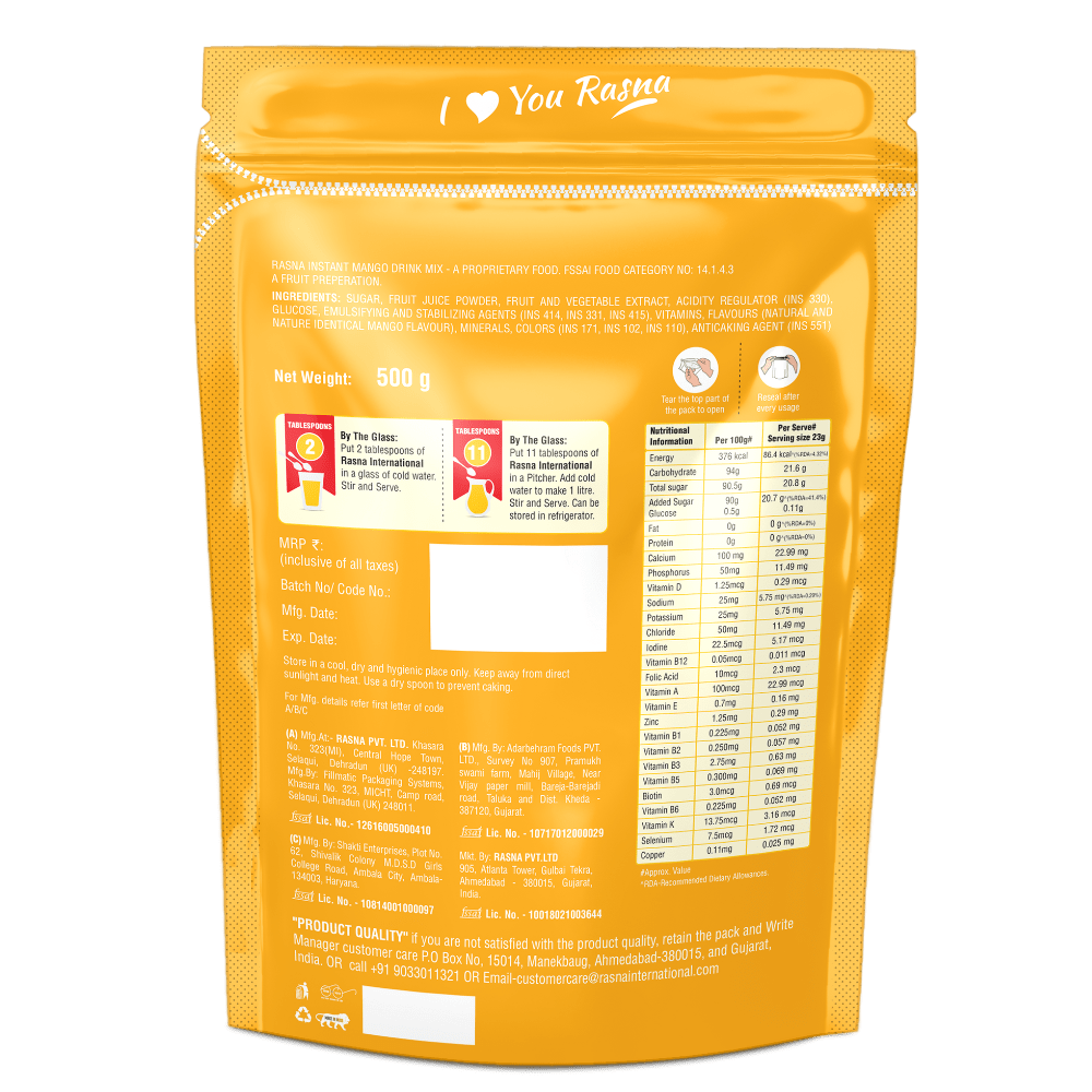 Rasna International Combo Pack Mango Flavour 500g x 2